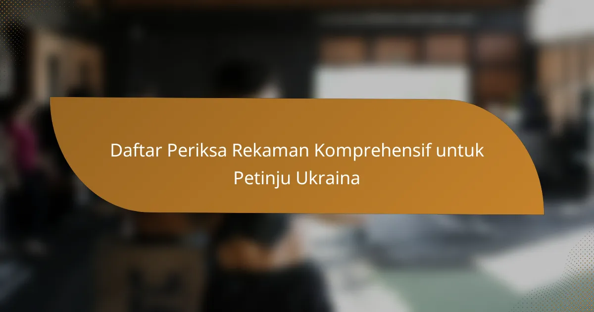 Checklist catatan komprehensif untuk petinju Ukraina adalah alat sistematis yang membantu melacak kinerja, pelatihan, dan informasi kesehatan seorang petinju. Checklist ini memastikan bahwa semua data yang relevan terorganisir dan dapat diakses, membantu dalam pengembangan dan manajemen petinju.