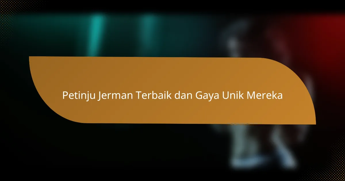 Petinju Jerman dikenal karena pendekatan disiplin mereka, menggabungkan keterampilan teknis dengan pemikiran strategis. Gaya unik mereka sering menekankan dasar yang kuat, gerakan kaki, dan fokus pada pertahanan, menjadikan mereka lawan yang tangguh di ring.